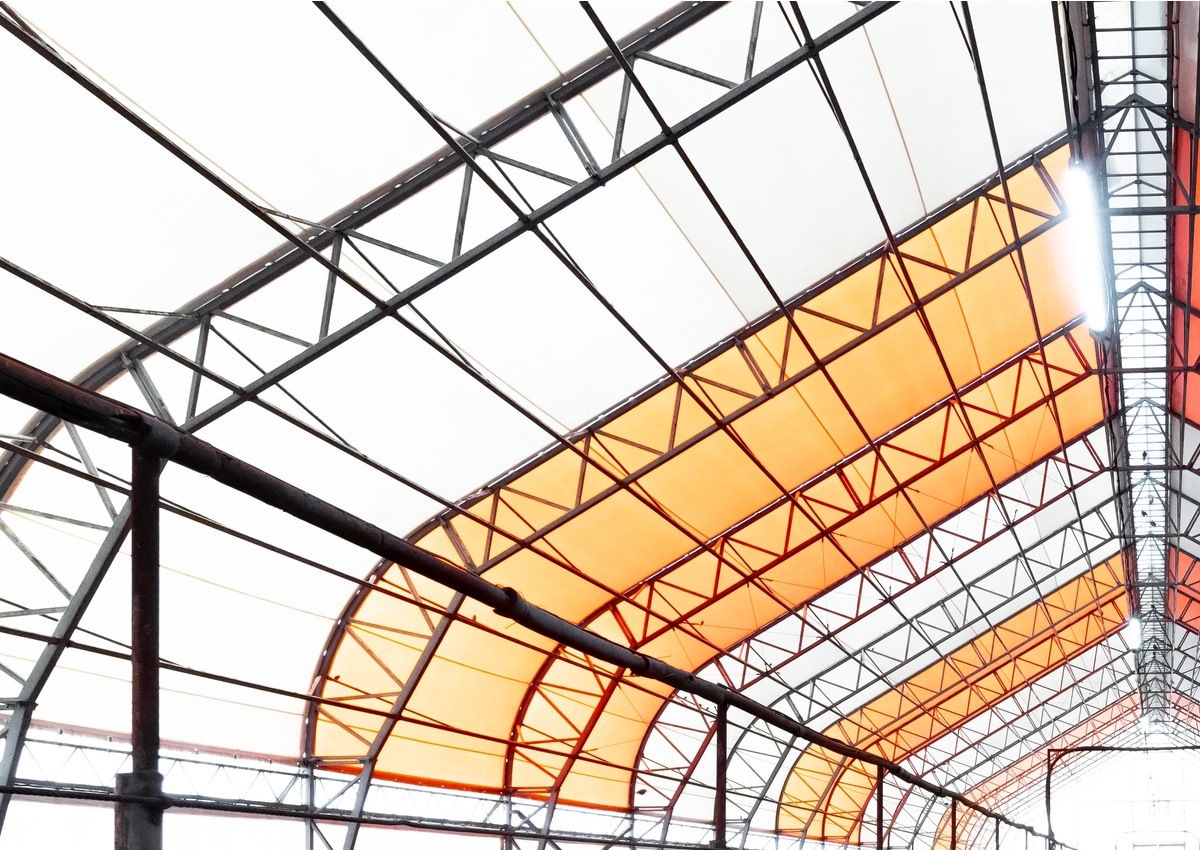 Работы по монтажу прямостенного ангара с двухскатной крышей